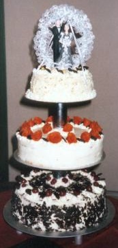 Unsere super Hochzeitstorte, übrigens auch mit orange Rosen wie meine Brautstraußrosen